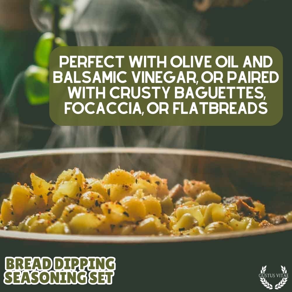 Elevate and enhance your bread dipping game with this ultra-premium 6 pack collection of artisanal and all-natural gourmet seasonings. Each unique spice blend is expertly crafted to add a burst of flavor to any bread dipping experience, from crusty baguettes to soft focaccia. This flavorful collection includes six unique spice mixes, each carefully designed to bring out the best in each dip. Whether you prefer the tangy and herbaceous flavors of our Roasted Red Pepper Seasoning, the rich and grassy taste of our Secret Garden Seasoning, or everything-flavor pop of our Kitchen Sink Seasoning, our collection has something for everyone.